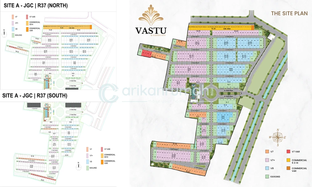 Cluster Vatsu Jakarta Garden City di bangun di atas lahan 7,5 hektar berada di lokasi terdepannya JGC dan ditargetkan 338 unit rumah premium. Vastu Garden City dirancang oleh Hadivincent Architects yang merupakan salah satu arsitek yang namanya sudah sangat dikenal di Indonesia. Memiliki konsep desain yang kuat dan matang, baik dalam penyelesaian masalah ruang, konstruksi, maupun estetika. Rumah dirancang memiliki ambience, rapi, simpel, banyak ruang terbuka, terkesan luas, baik sirkulasi udaranya sehingga nyaman untuk ditinggali. Setiap rumah di desain khusus memiliki luas bangunan maksimal, supaya terasa lebih luas. Sirkulasi udara mengalir dengan baik. Hasilnya rumah yang lebih sejuk dan hemat dalam pemakaian listrik.